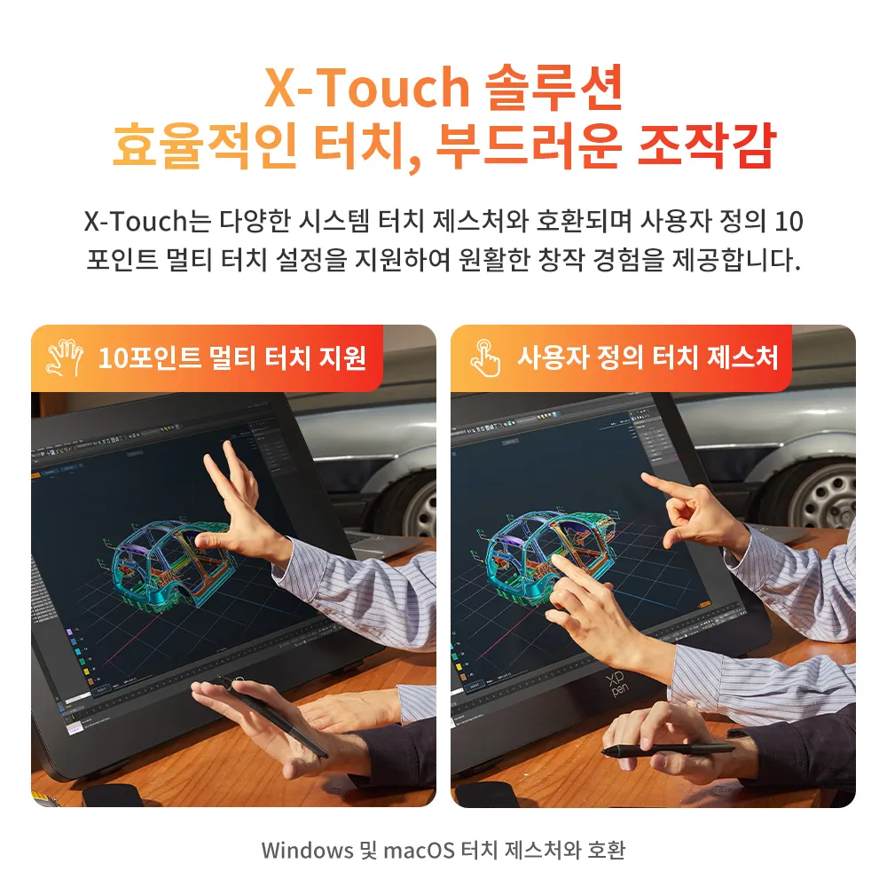 X-Touch는 Windows/macOS의 터치 제스처를 지원하여 스와이프, 확대/축소, 회전하는 등의 기본 작업을 처음부터 능숙하게 사용할 수 있습니다.