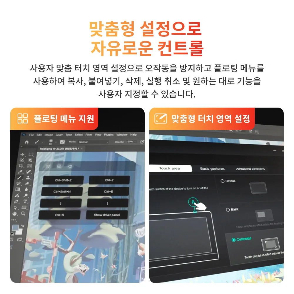 사용자 맞춤 터치 영역 설정으로 오작동을 방지합니다.
