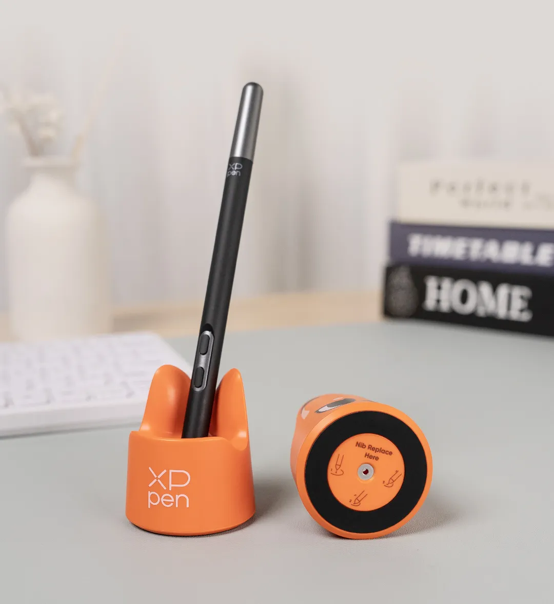 펜 홀더에 모든 XPPen 스타일러스를 세로 또는 가로로 보관할 수 있기에 작업 공간 정리에 도움이 될 뿐만 아니라 펜심이 손상되지 않게 보관이 가능합니다.
