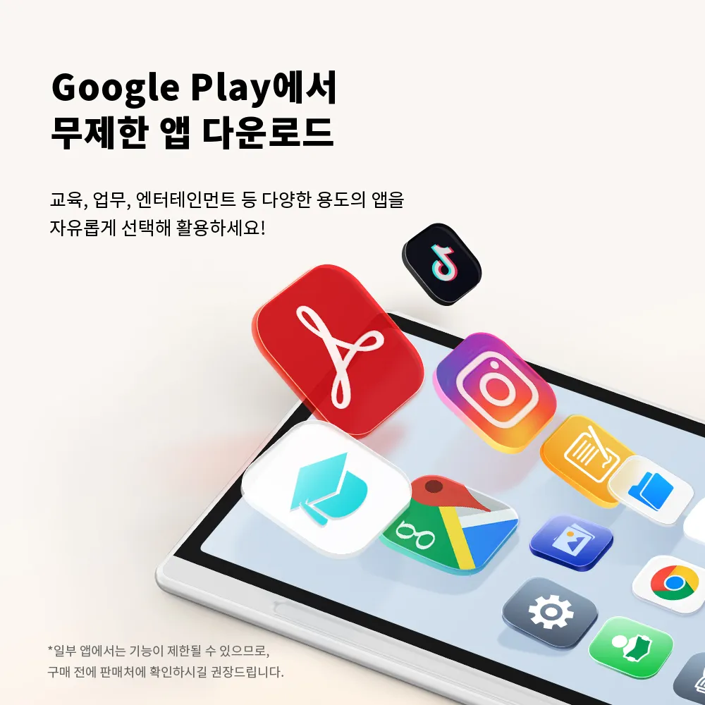기본 Android 시스템을 통해 Google Play에서 수백만 개의 앱을 손쉽게 다운로드할 수 있습니다. 교육, 사무, 엔터테인먼트 등 다양한 용도의 앱을 자유롭게 선택해 활용하세요!